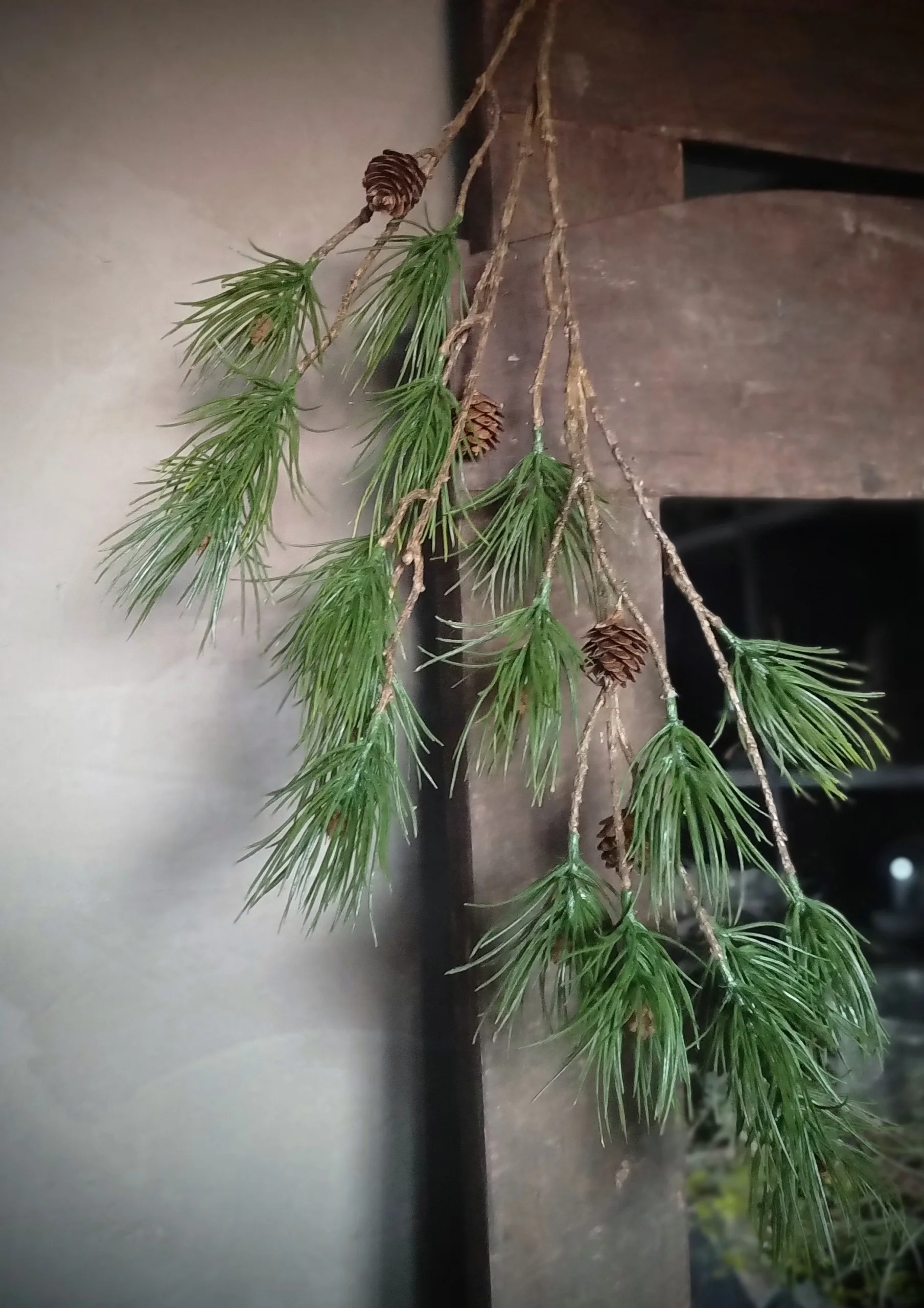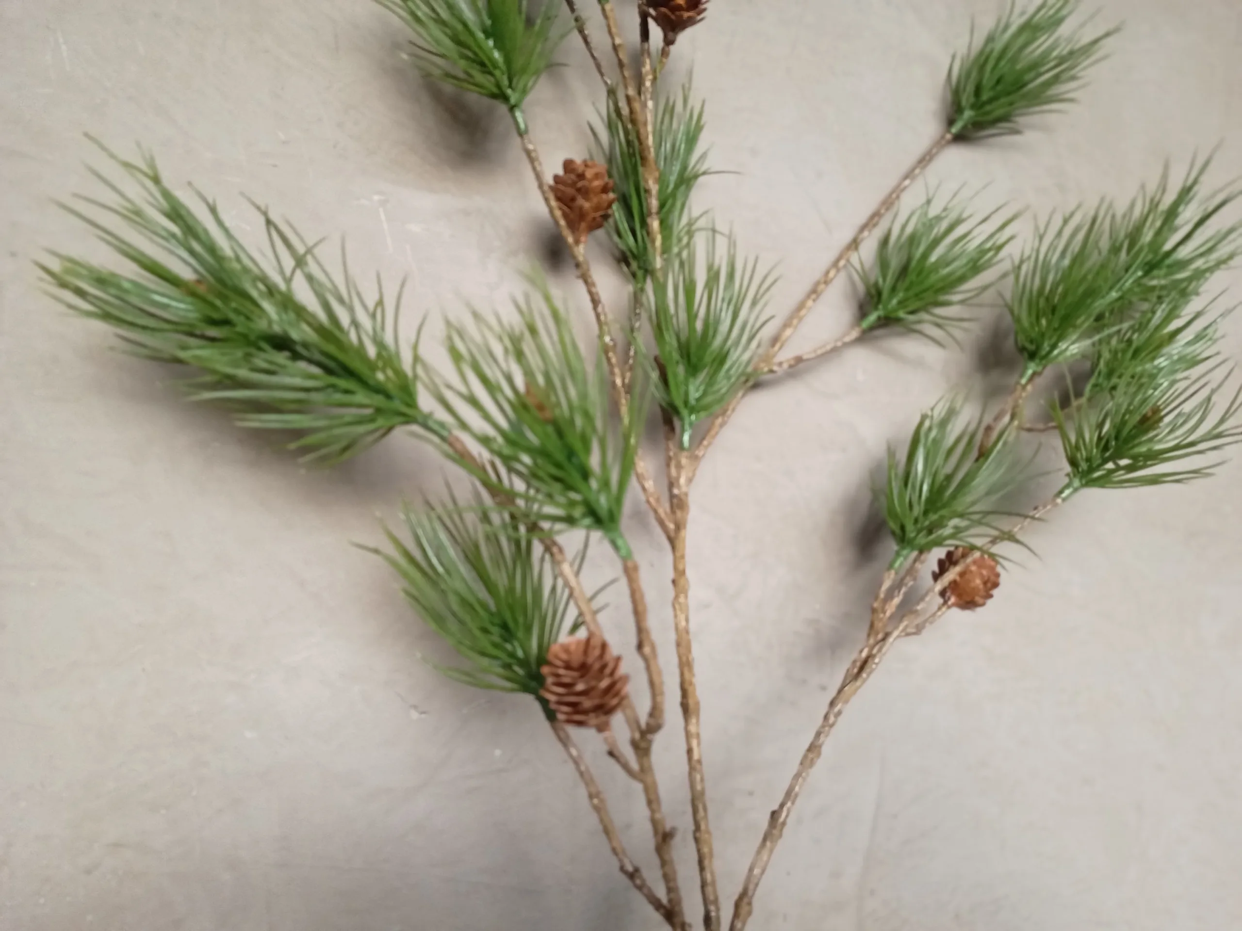 Prachtige niet van echt te onderscheiden kunst Pinus tak met diverse kleine denappeltjes. De tak heeft meerdere zijtakken. Op diverse manieren te stylen bijvoorbeeld in een kruik maar ook te combineren met (echte) dennentakken. Lengte 1.10 cm. Eenvoudig te buigen voor de gewenste lengte.