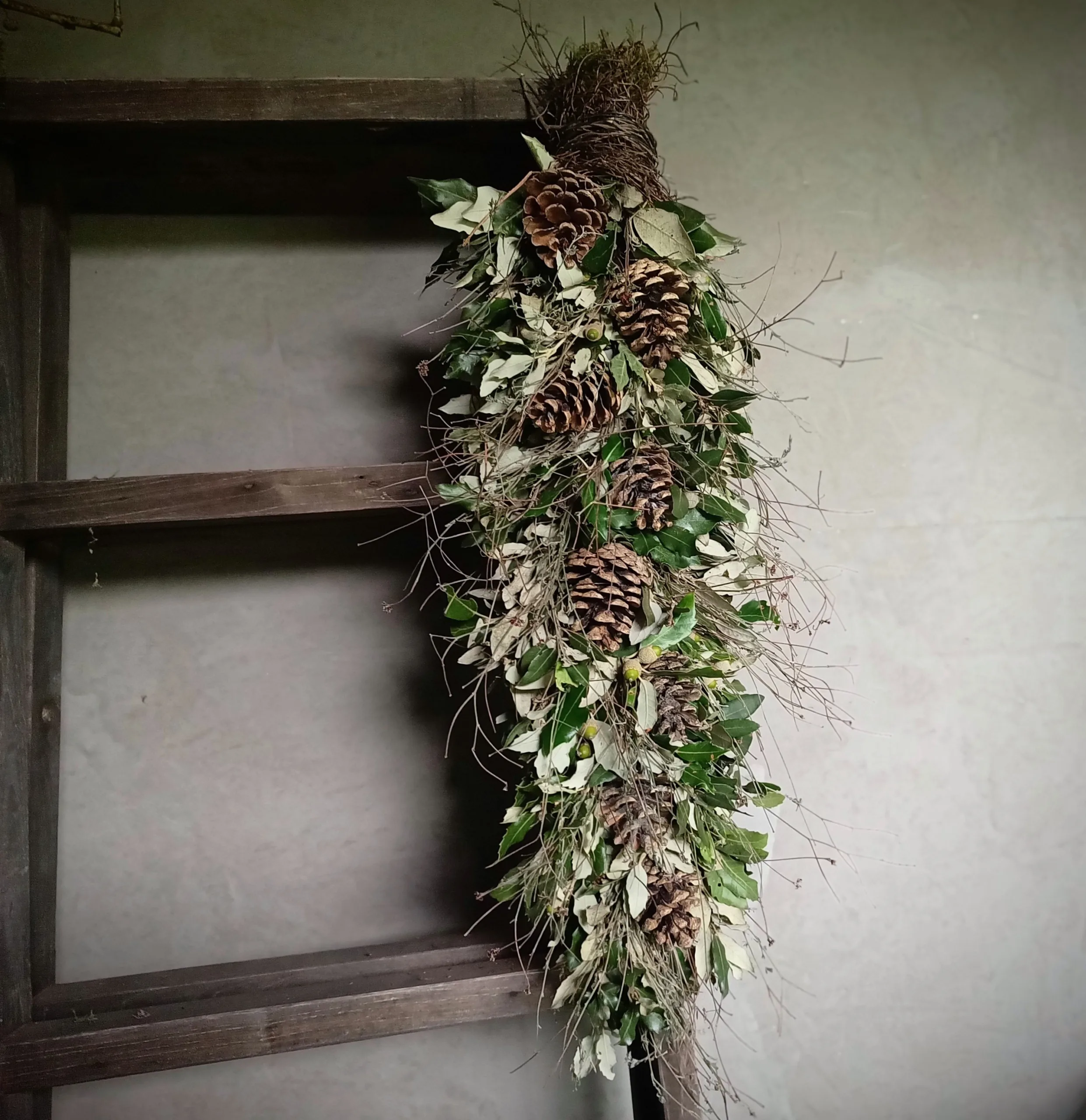 Toef gebonden met steeneik, wilde thijm en vergrijsde denappeltjes. Lengte ongeveer 40 cm.